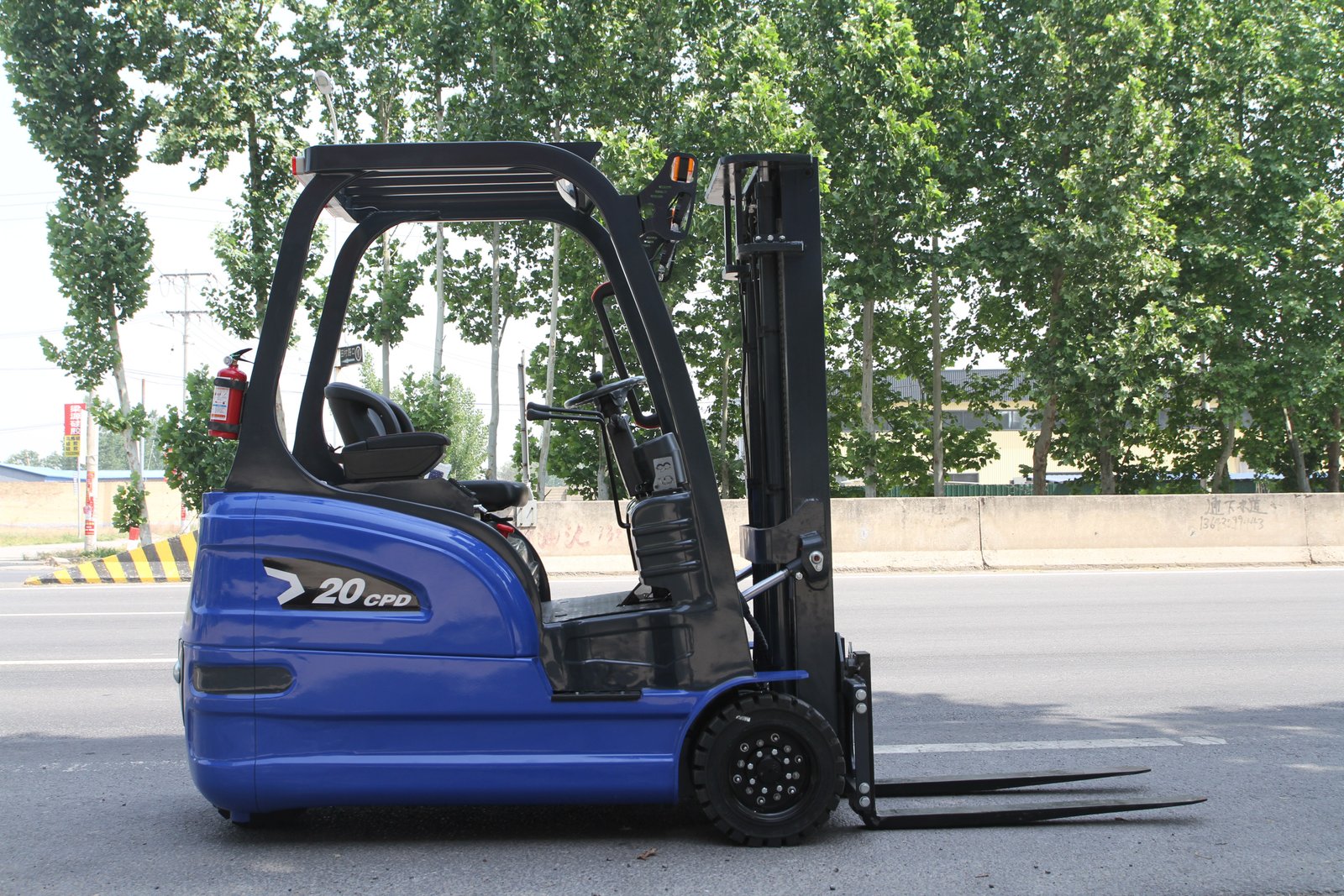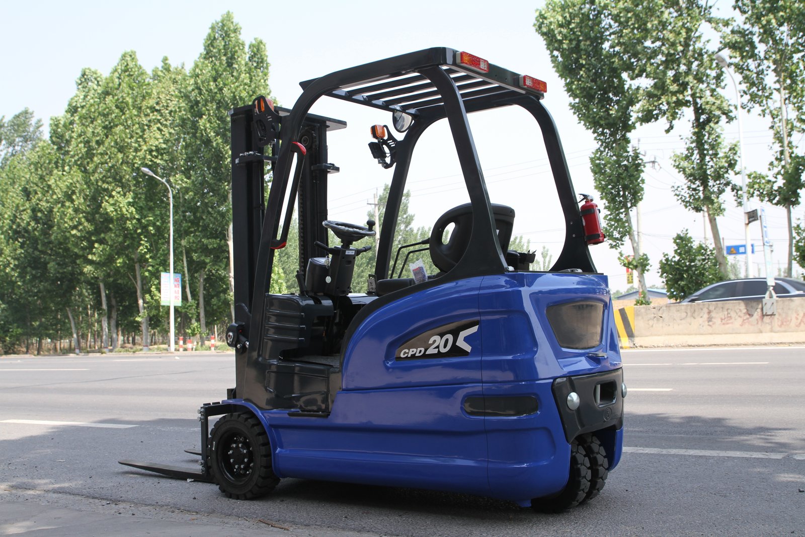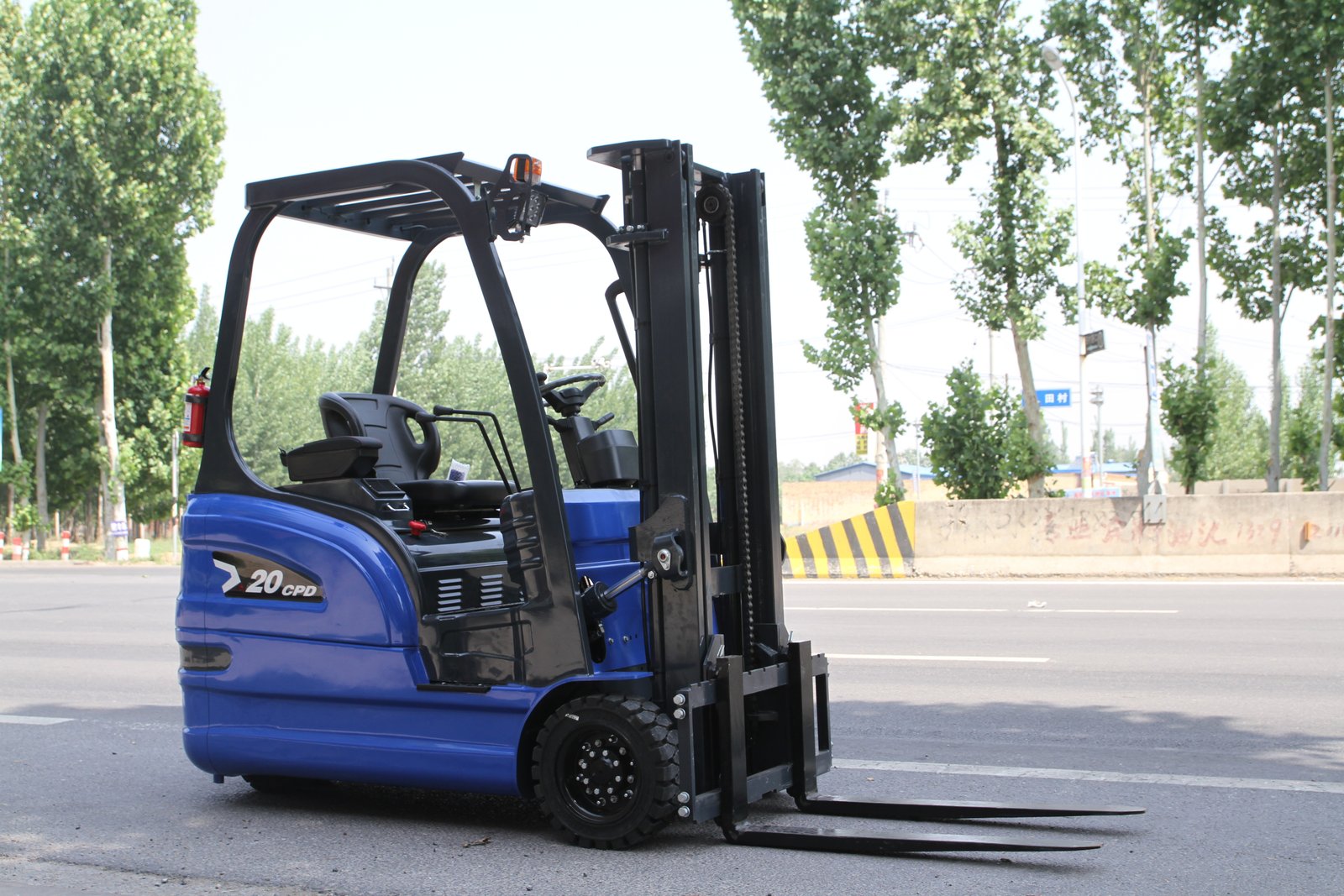 2.0-ton load capacity, cast iron counterweight, blue color scheme, three-point configuration