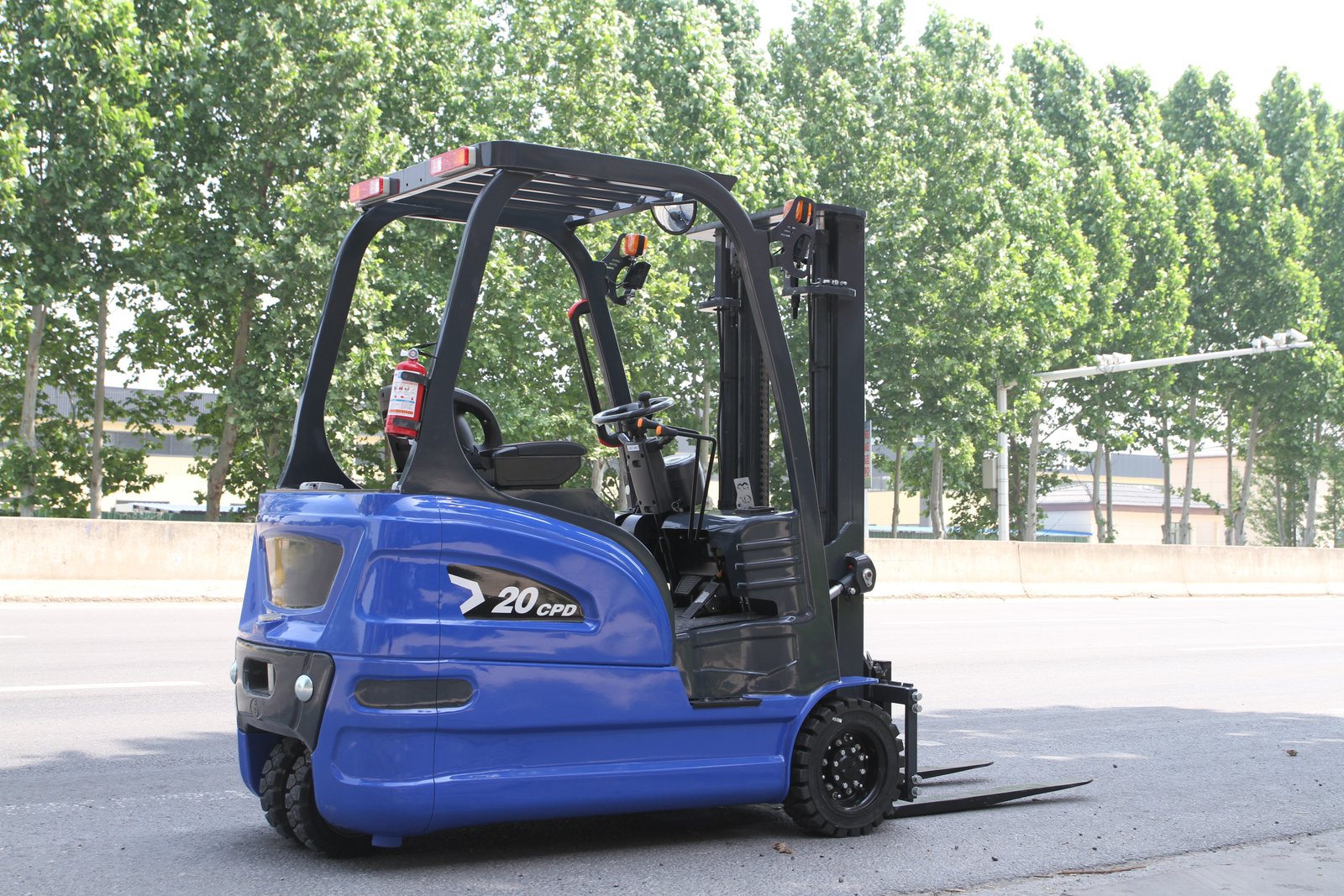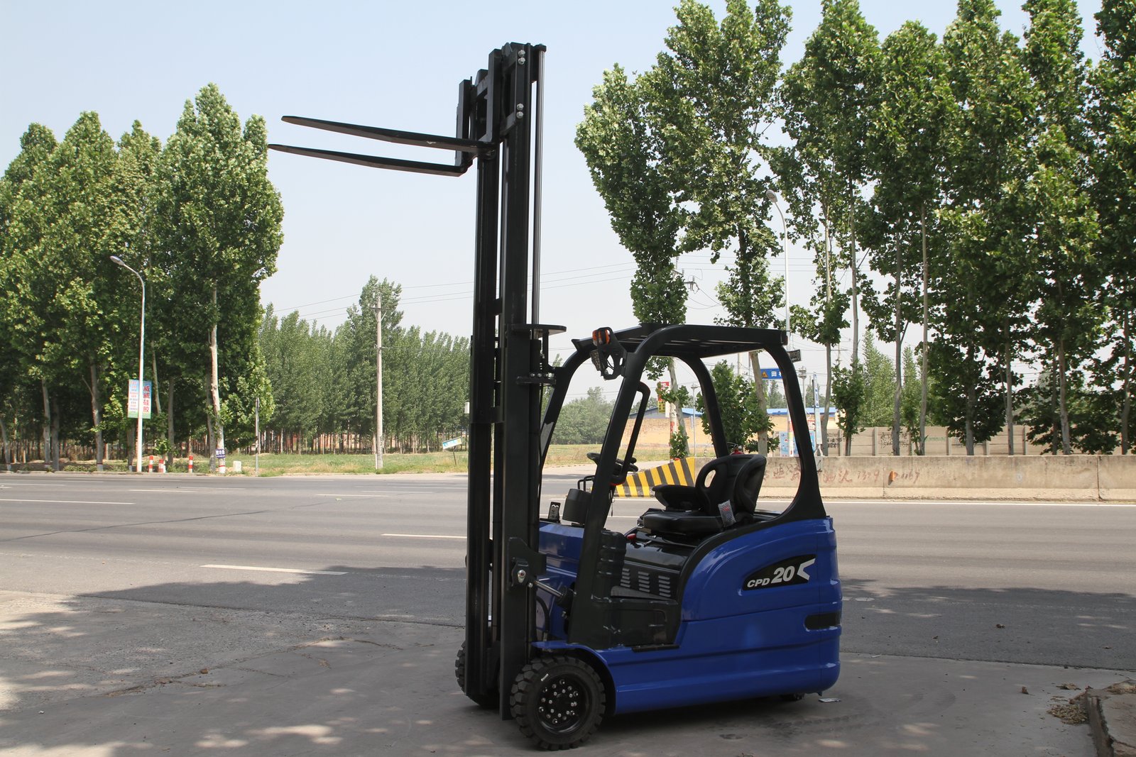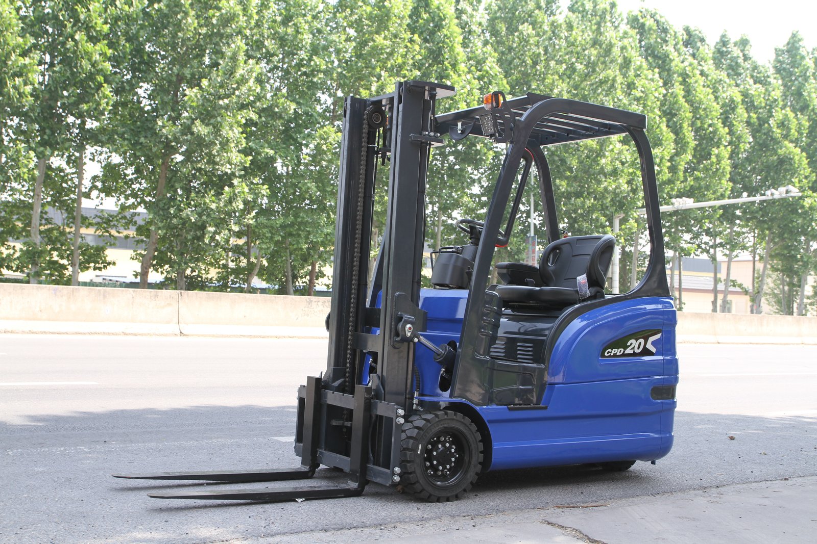 2.0-ton load capacity, cast iron counterweight, blue color scheme, three-point configuration