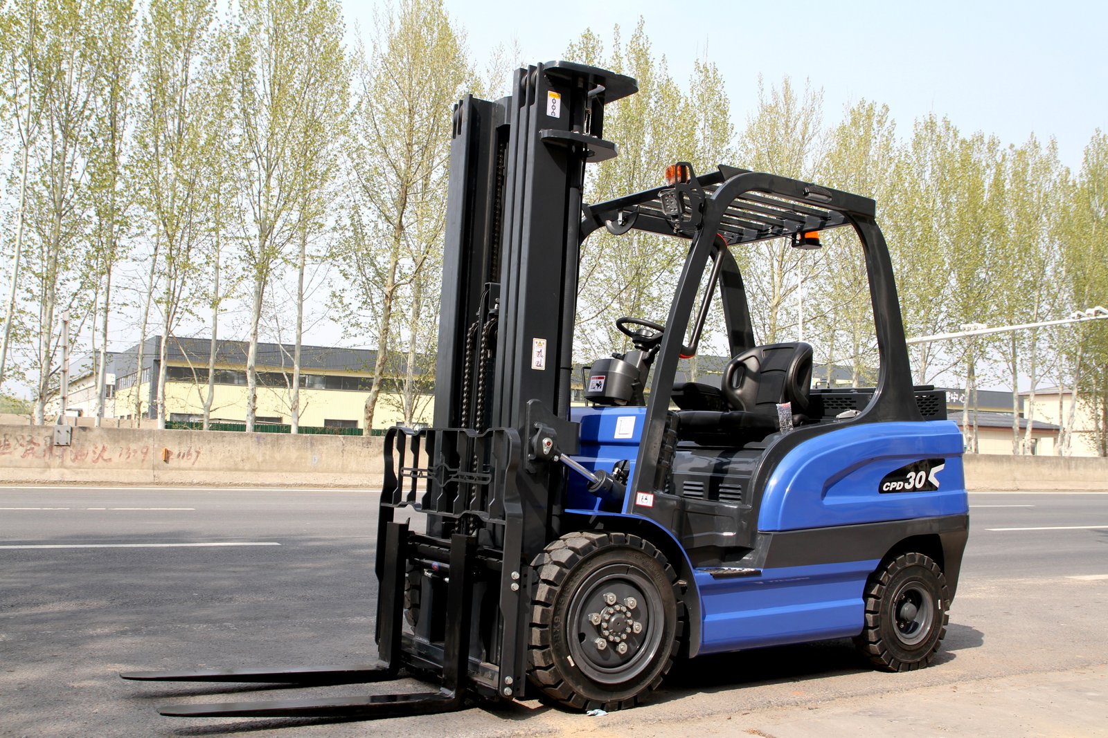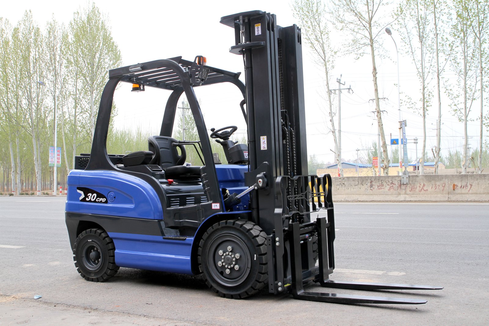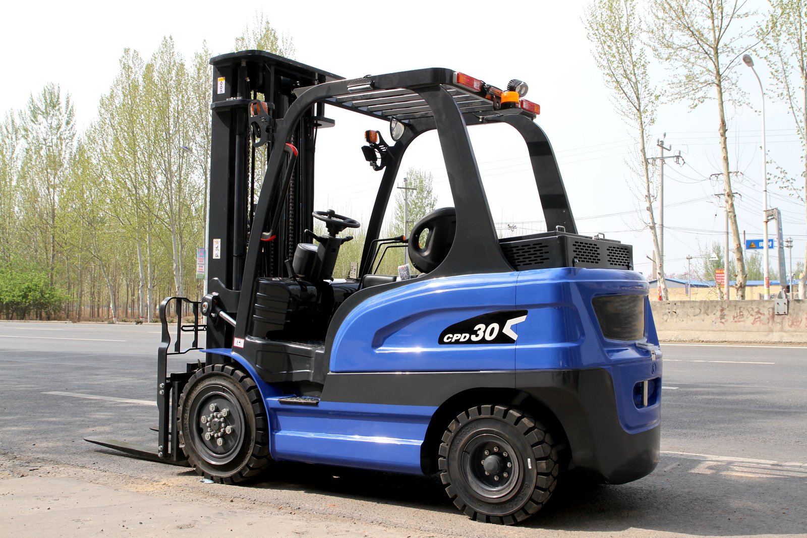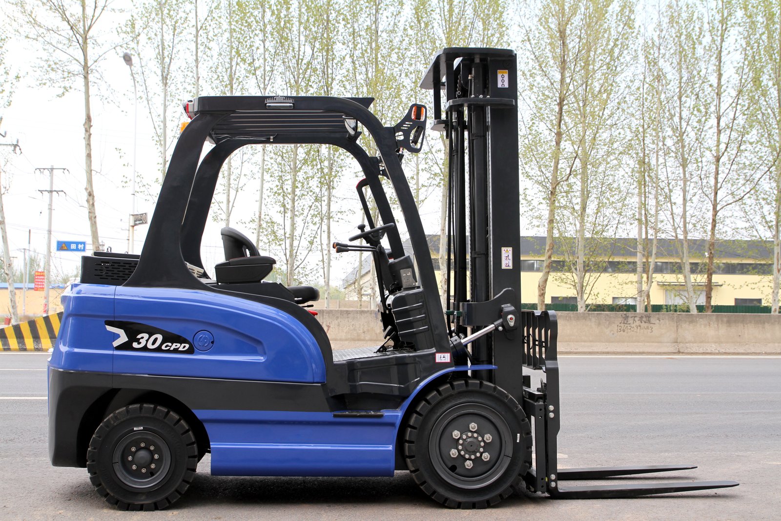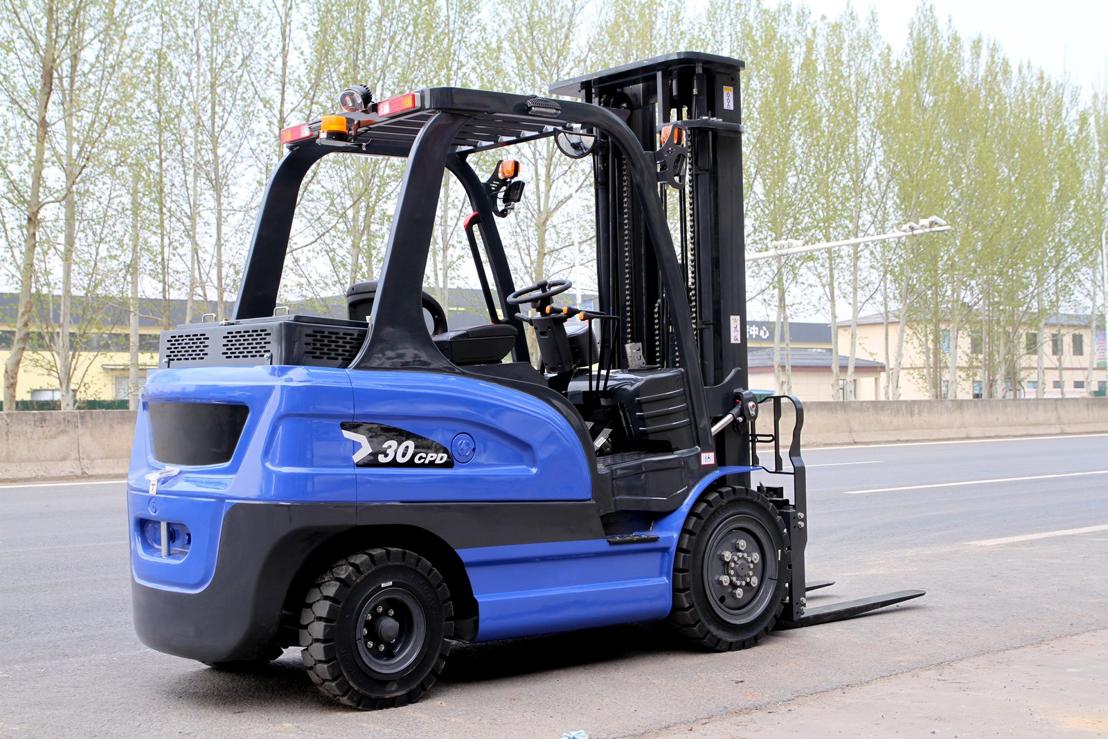 Tires: Solid tires (drive & steering wheels), durable for industrial use