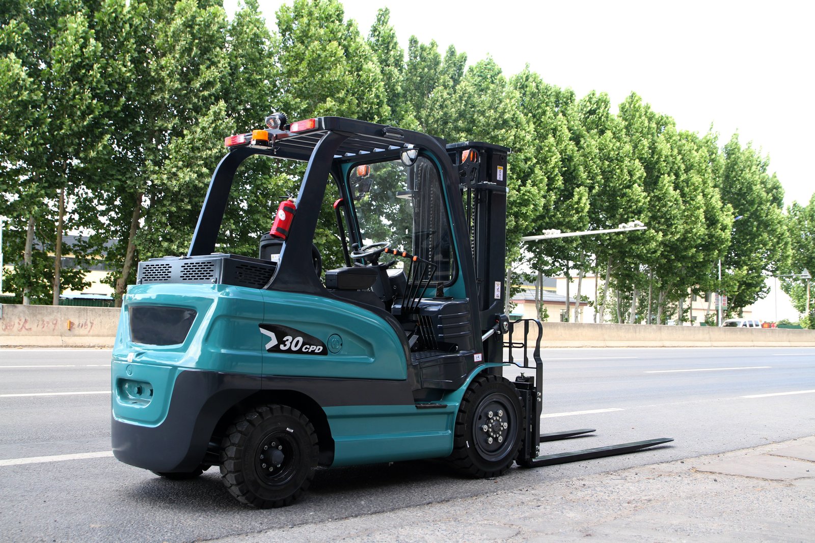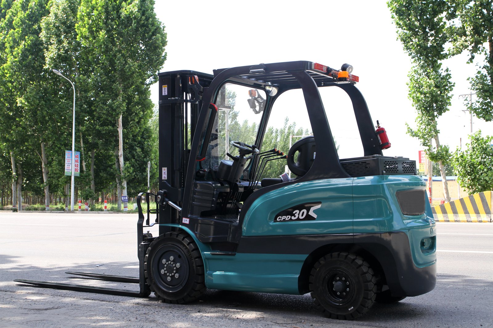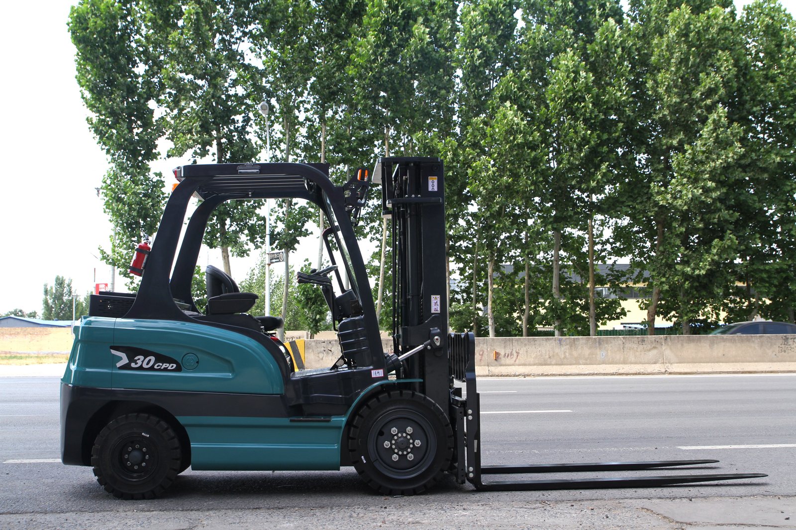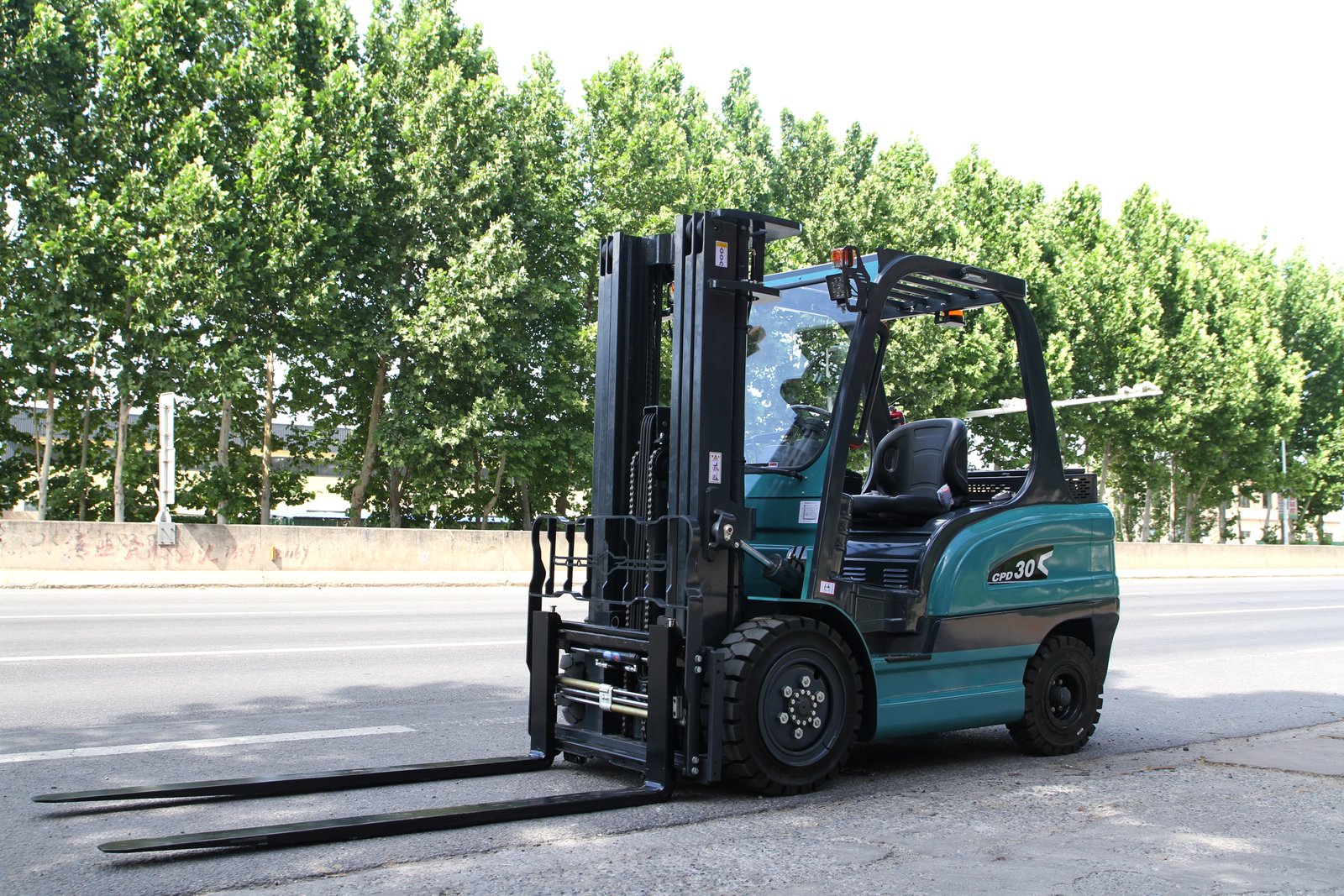 Tires: Solid tires (drive & steering wheels), durable for industrial use