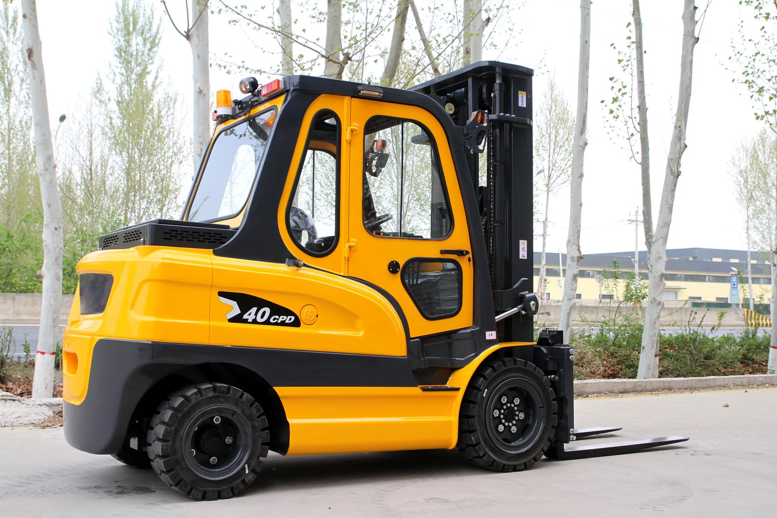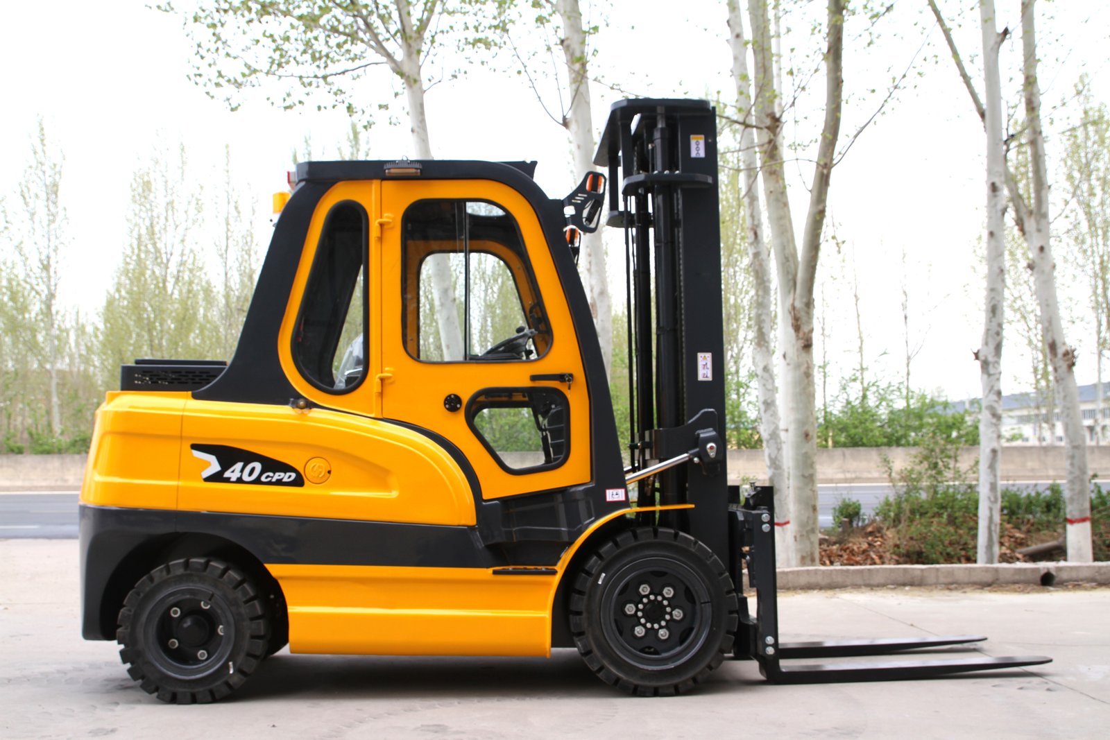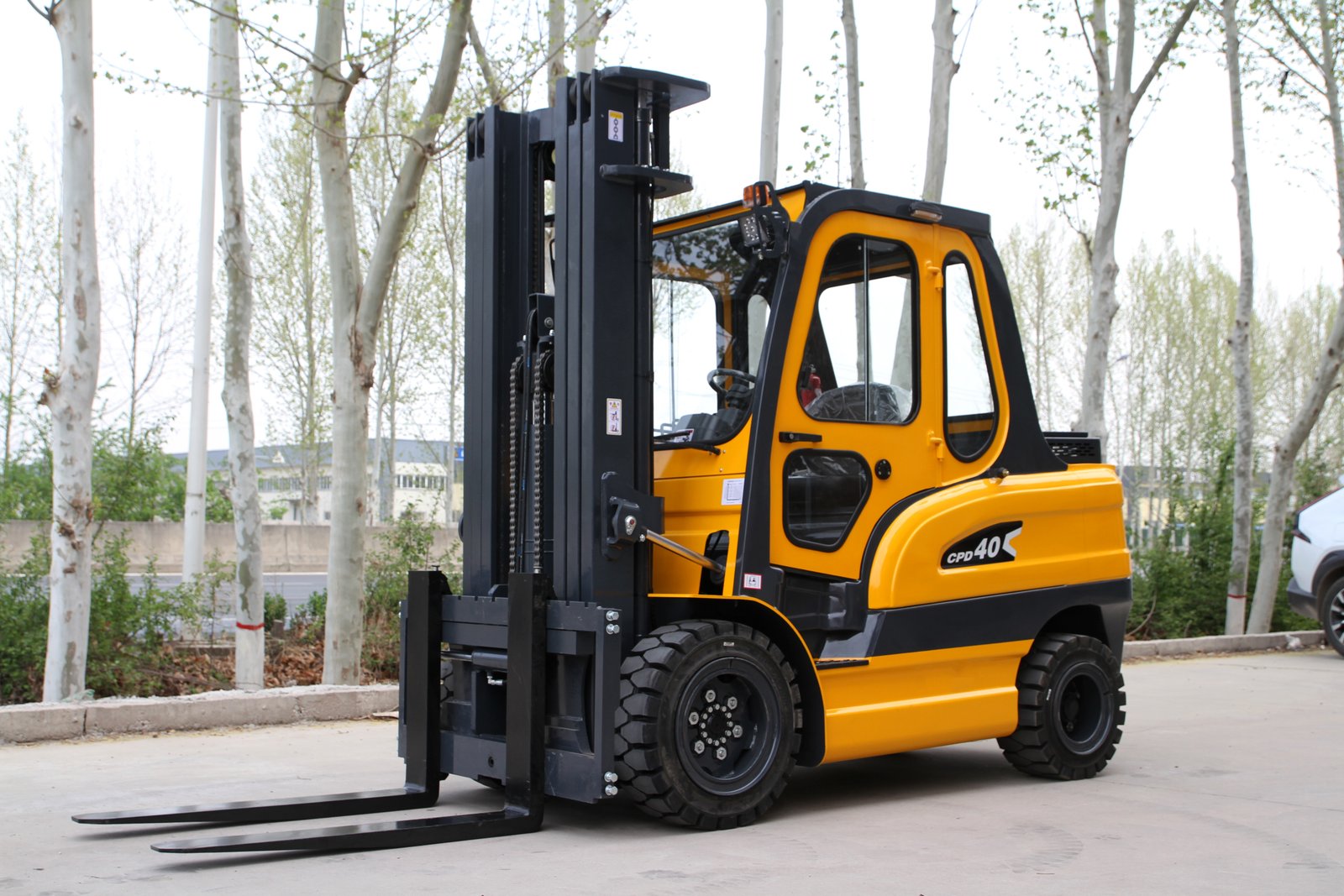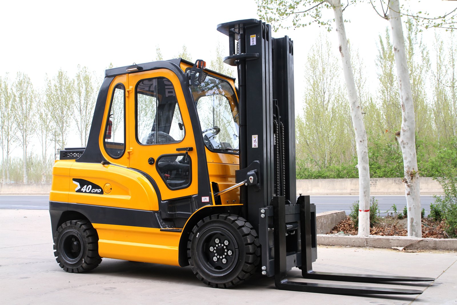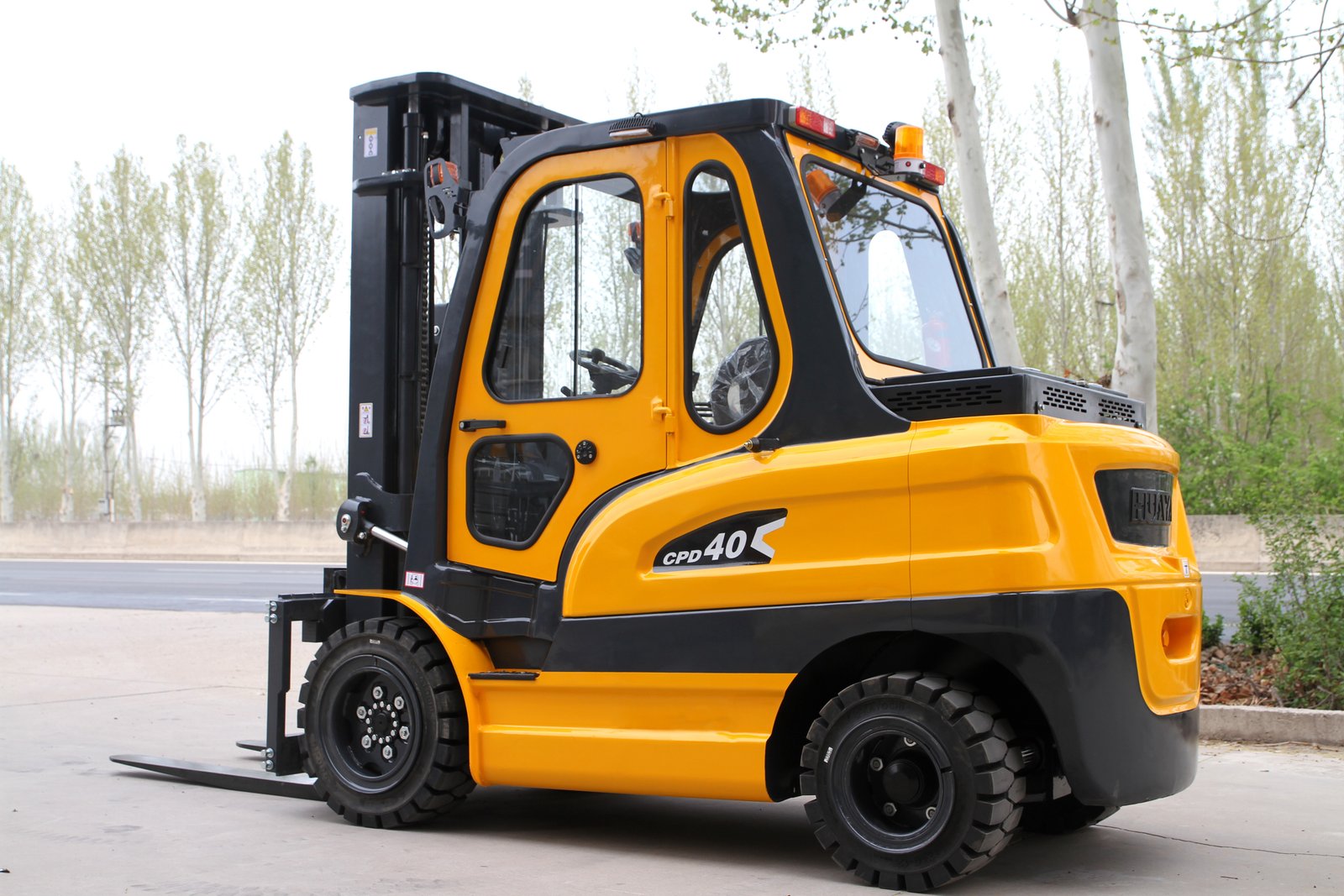 4.0-ton load capacity, cast iron counterweight, equipped with a cab.