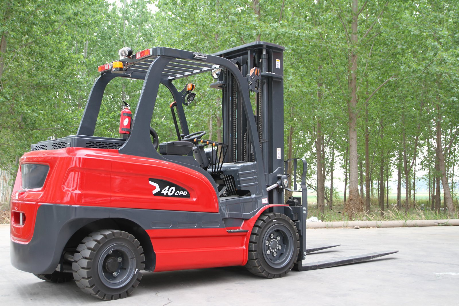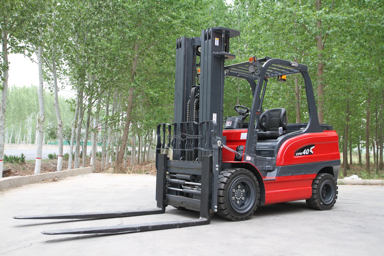 Tires: Solid tires (drive/steer), wear-resistant for heavy-duty use
